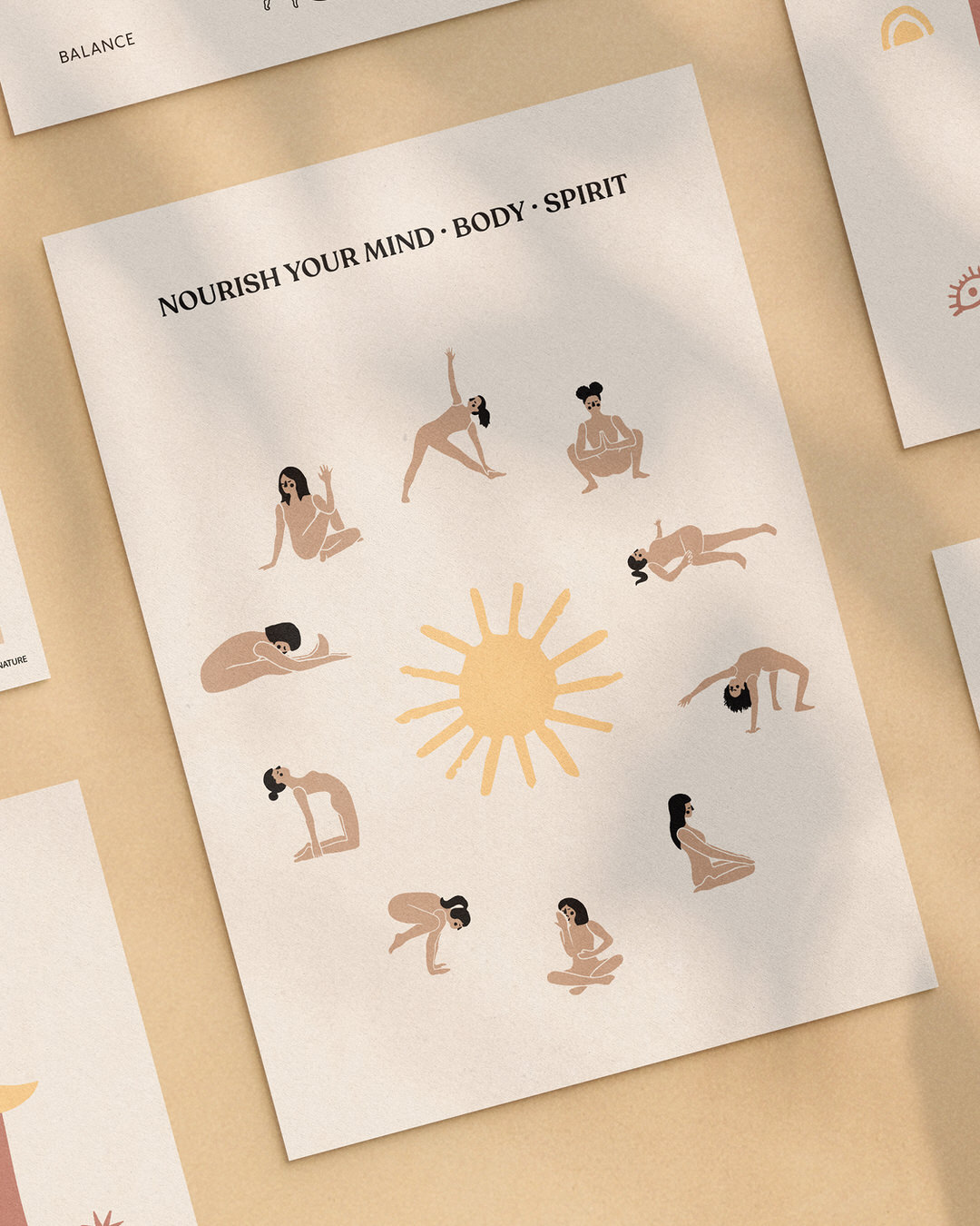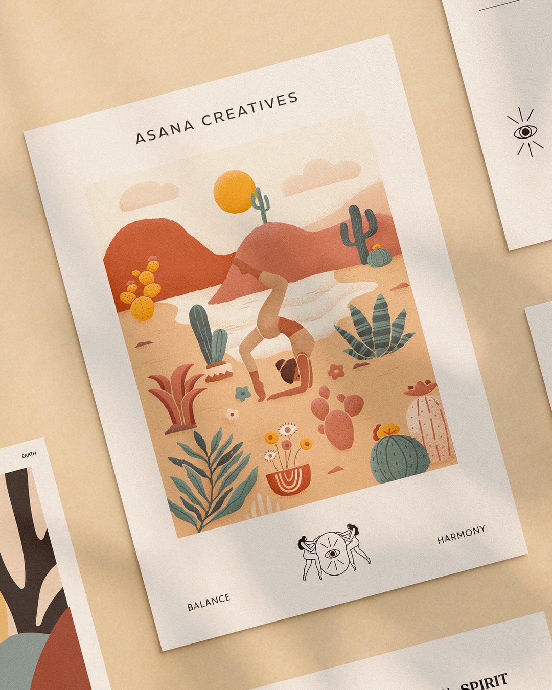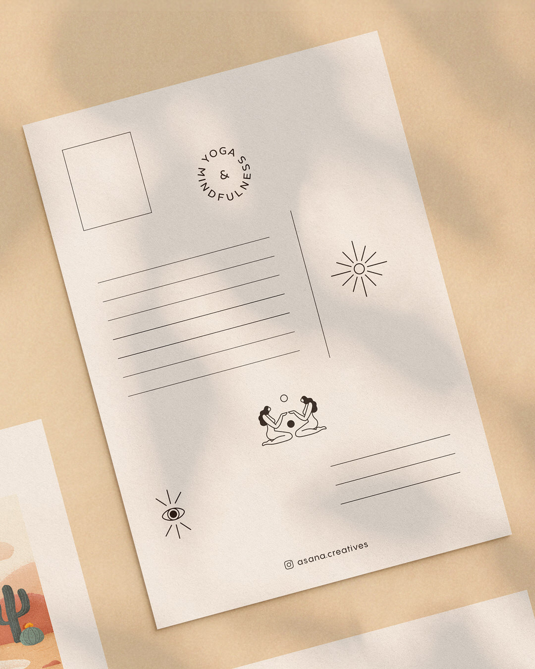 Seria 5 pocztówek z grafikami Asana Creatives.