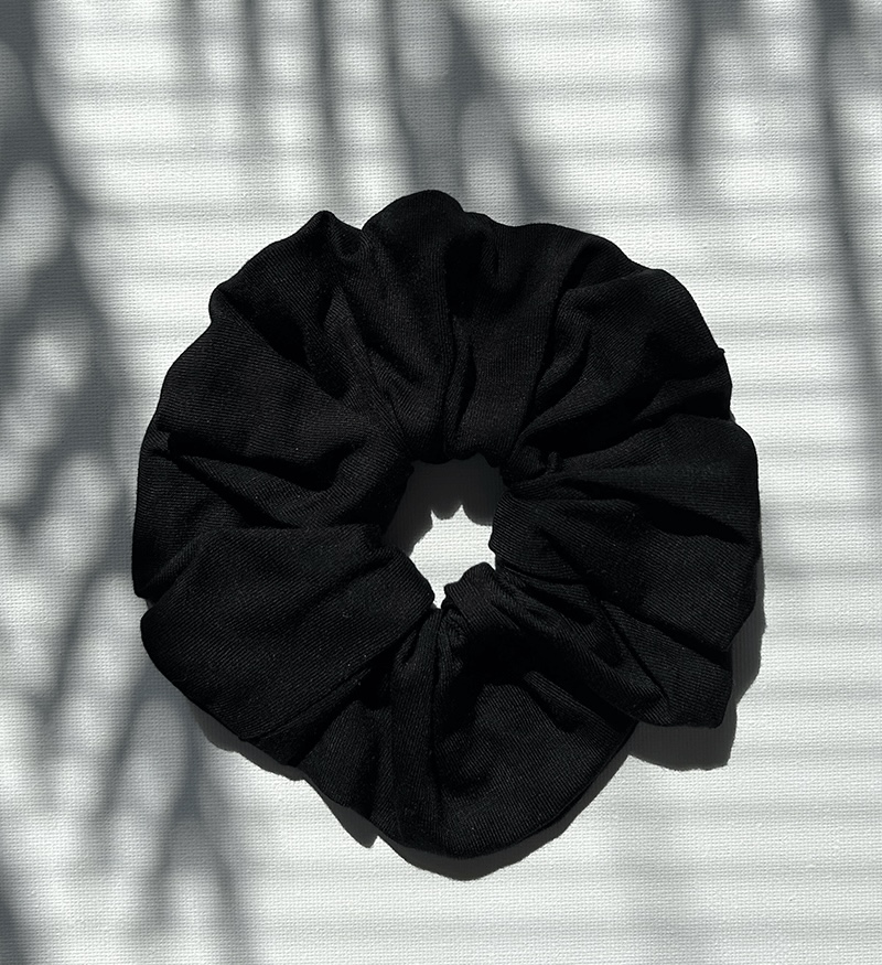 Scrunchie uszyta z resztek materiału po produkcji naszych spodni Asana Flow Pants – z miękkiej, oddychającej roślinnej wiskozy.